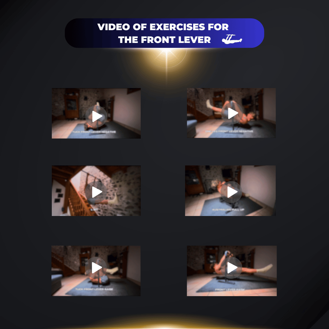 ✅ Targeted muscle-strengthening exercises to build the power and stability needed for a mastered front lever.
